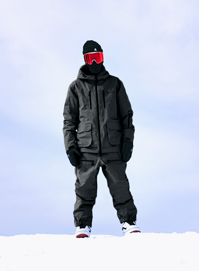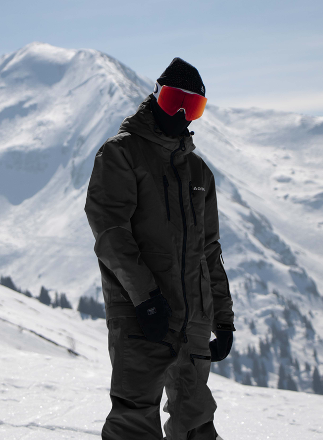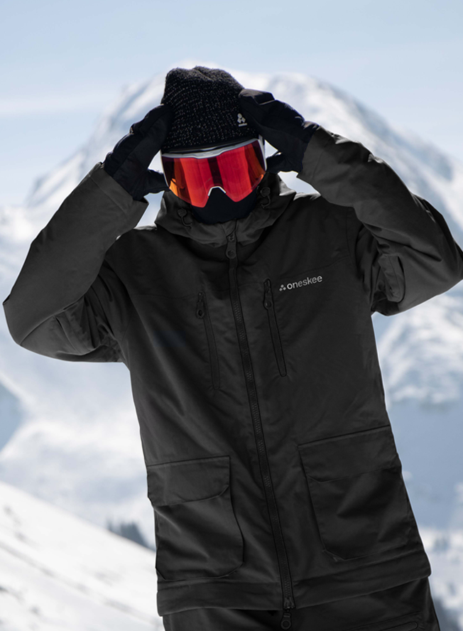 New in this season, this all black snow suit boasts an understated style thanks to its utility pockets and clean design. It’s part of our 2-in-1 Acclimate™ range which features a 360° zip around the waist that transforms the Oneskee suit into a jacket in seconds, allowing you to use it independently during apres and the milder months. It’s made from our robust SnowSense outer shell fabric and the following technical features: