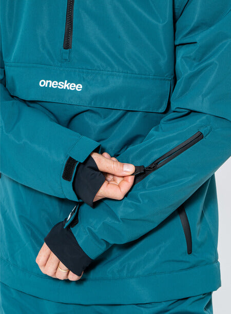 This is our green colour way in a smock overhead style jacket, with block green bib pants.