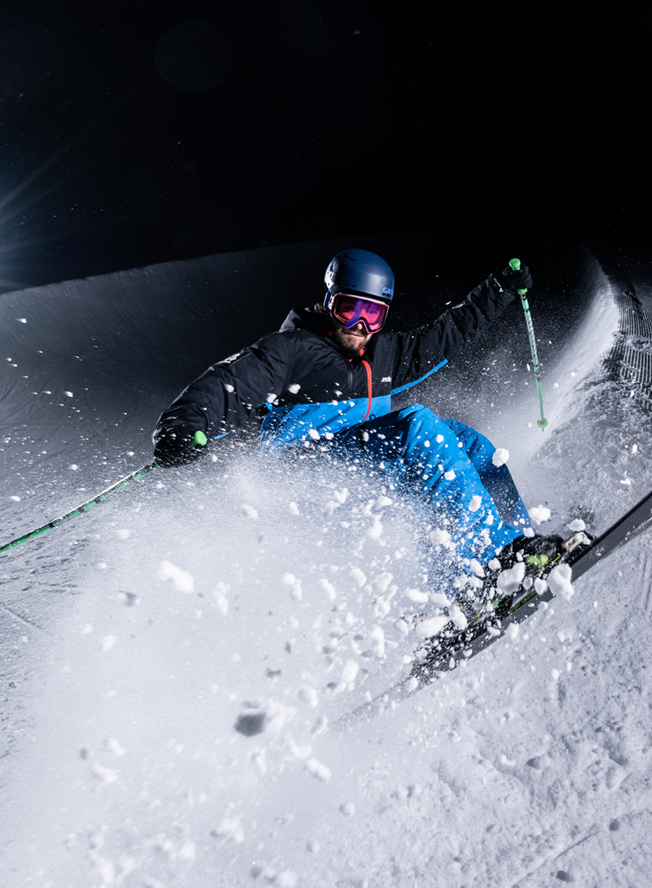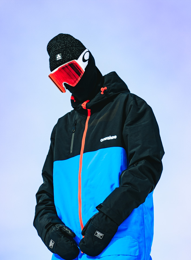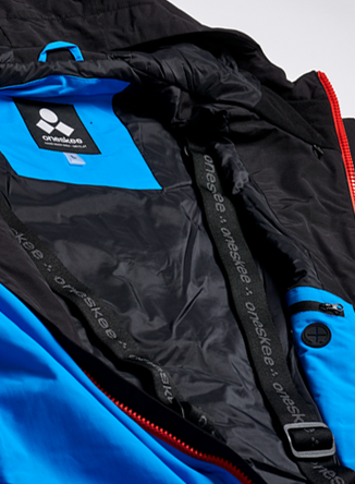 New in this season, this high performance Mark VII snow suit in vibrant blue and black has a flash of red running through its main zip. It’s made from our robust SnowSense outer shell fabric and the following technical features: