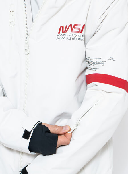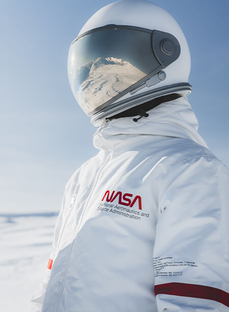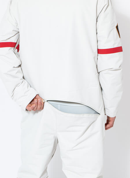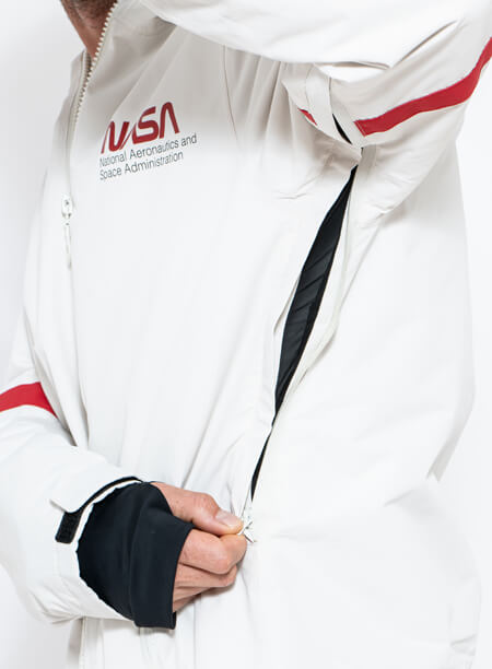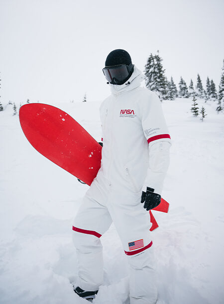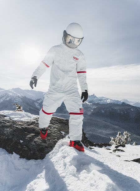 Our NASA space (snow) suit has become one of our most popular designs and a staple within our men's collections - this is the traditional white & red colour way.